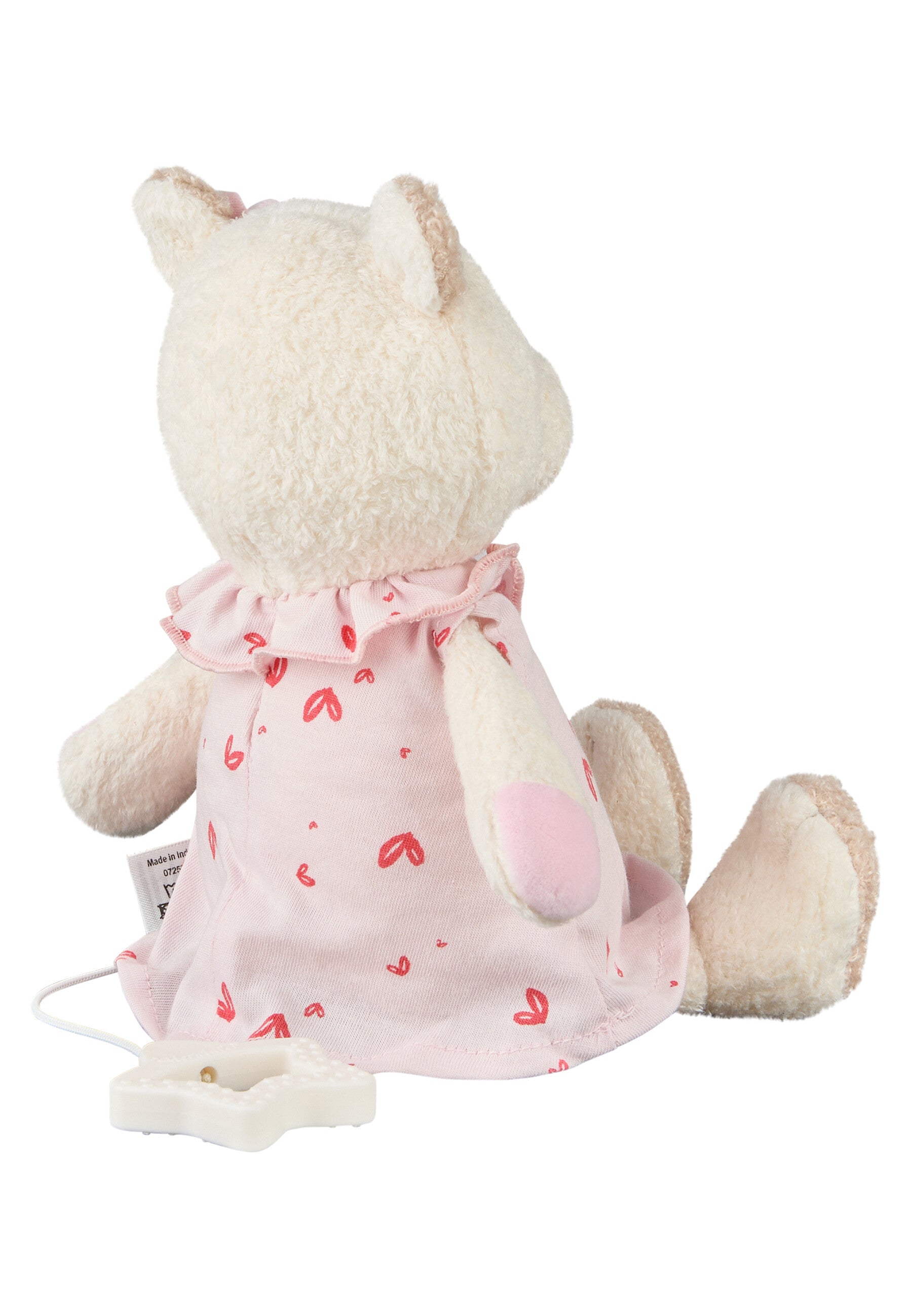 • der Reißverschluss macht das Herausnehmen des Spielwerks einfach und die Figur ist problemlos waschbar