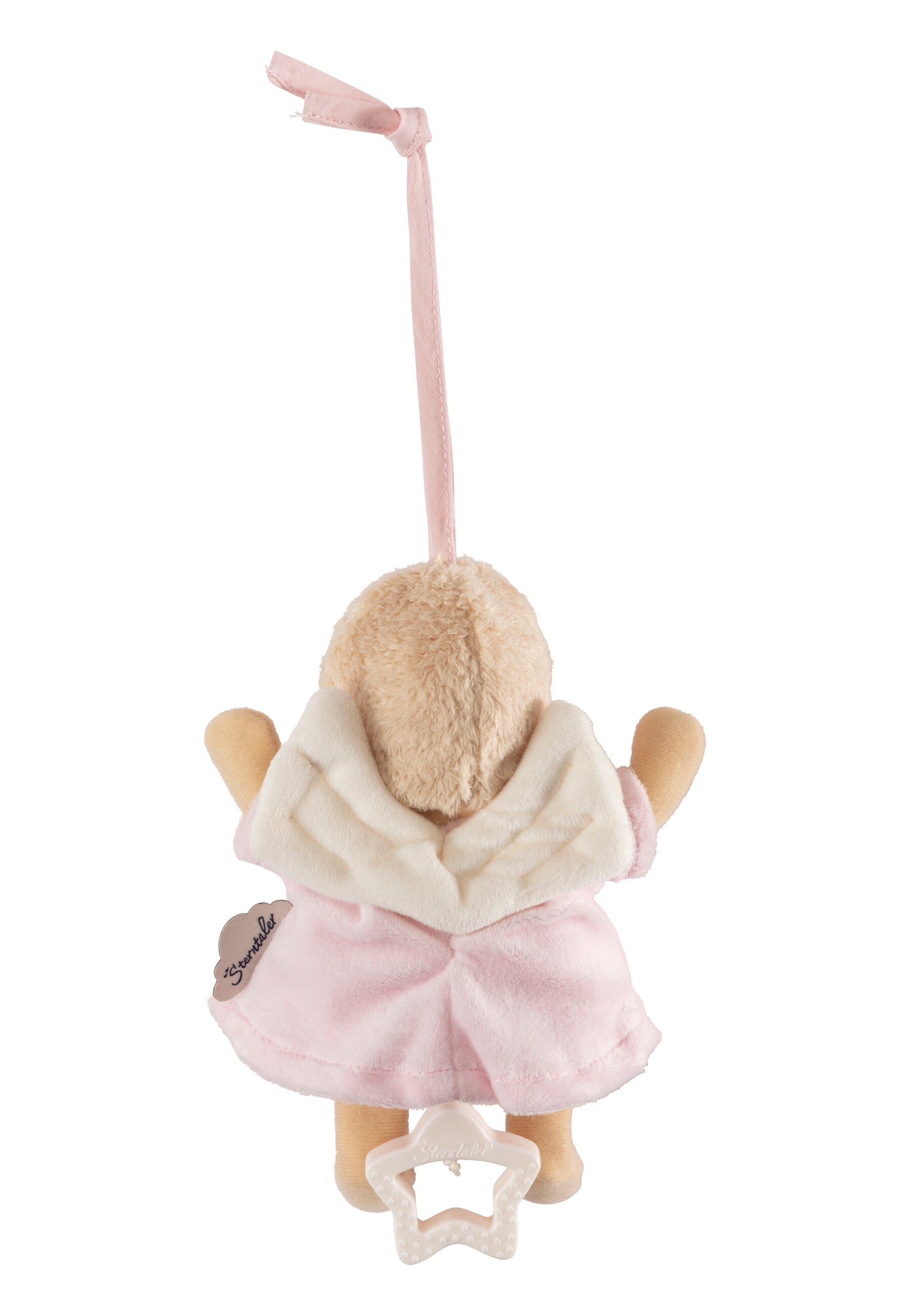 Das Spielwerk wird per Sternengriff aufgezogen und spielt „Brahms Wiegenlied“. Mit Bindeband zur schnellen Befestigung an Bett, Kinderwagen oder Autositz; der Griff ist feucht abwischbar.