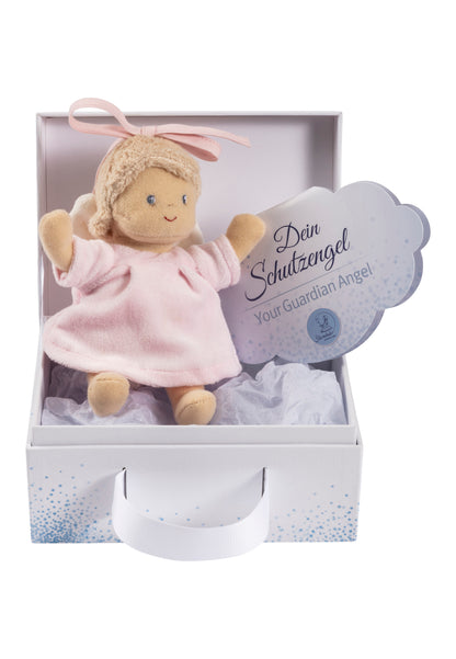 Der kleine Schutzengel in Rosa ist ein bezaubernder Einschlafhelfer für Neugeborene. Weiche Materialien sorgen für eine angenehme Haptik.
