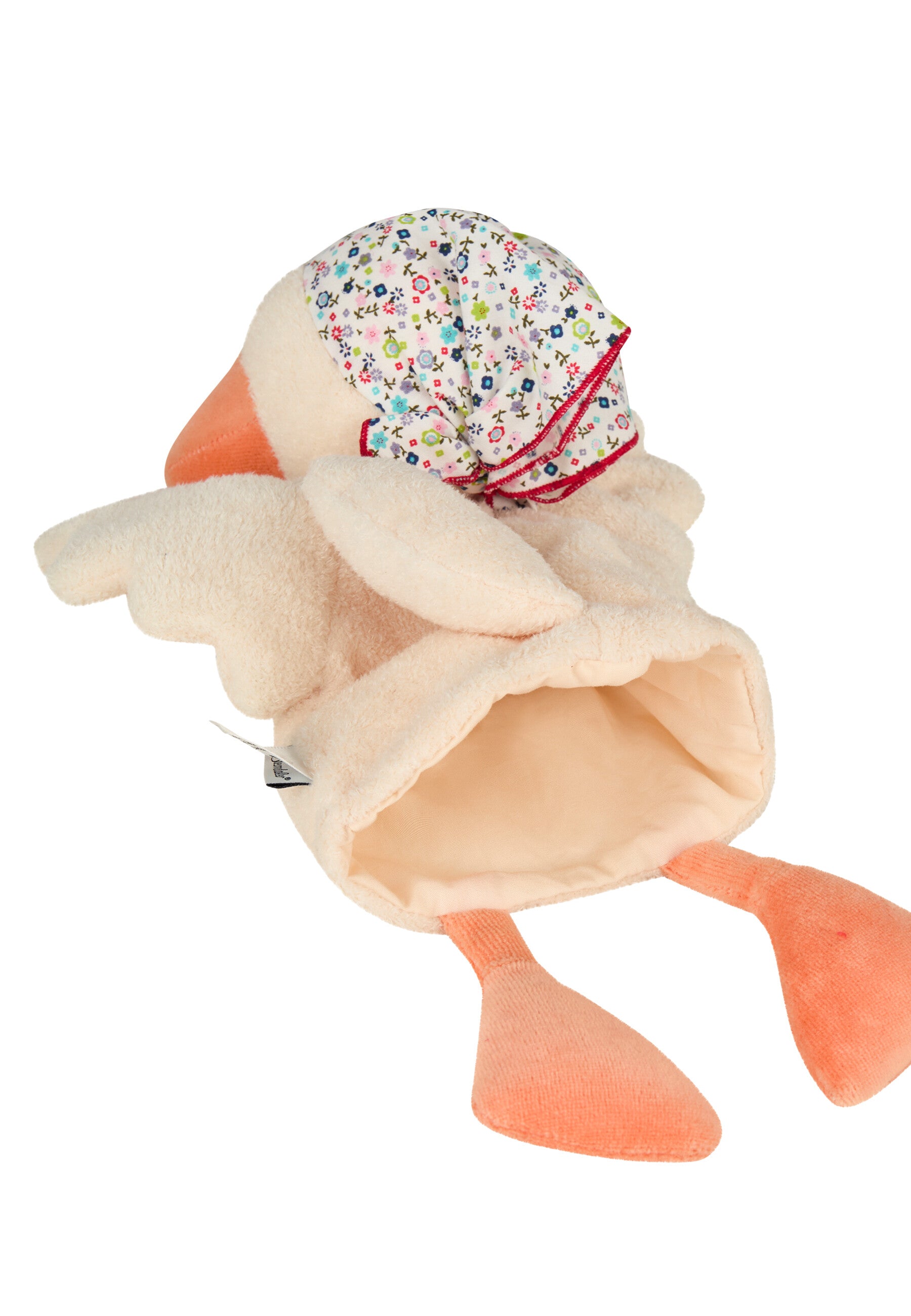 Die Handpuppe Gans aus weichem Flauschstoff kommt mit niedlichem Kopftuch und freundlichen Knopfaugen – bereit für lustige Geschichten und Schabernack.