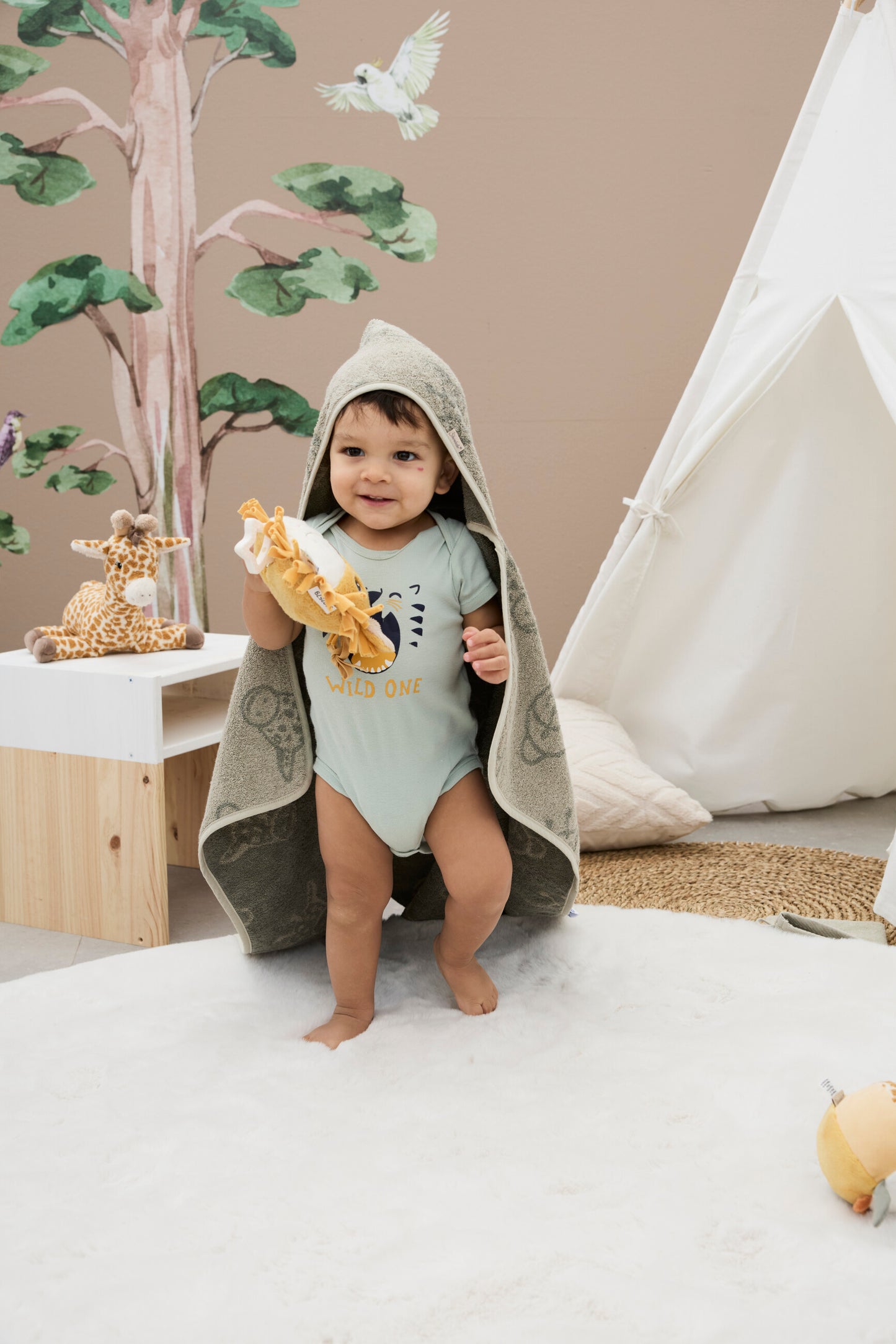 Die Spieluhr Giraffe Kaya begleitet Babys sanft in den Schlaf.