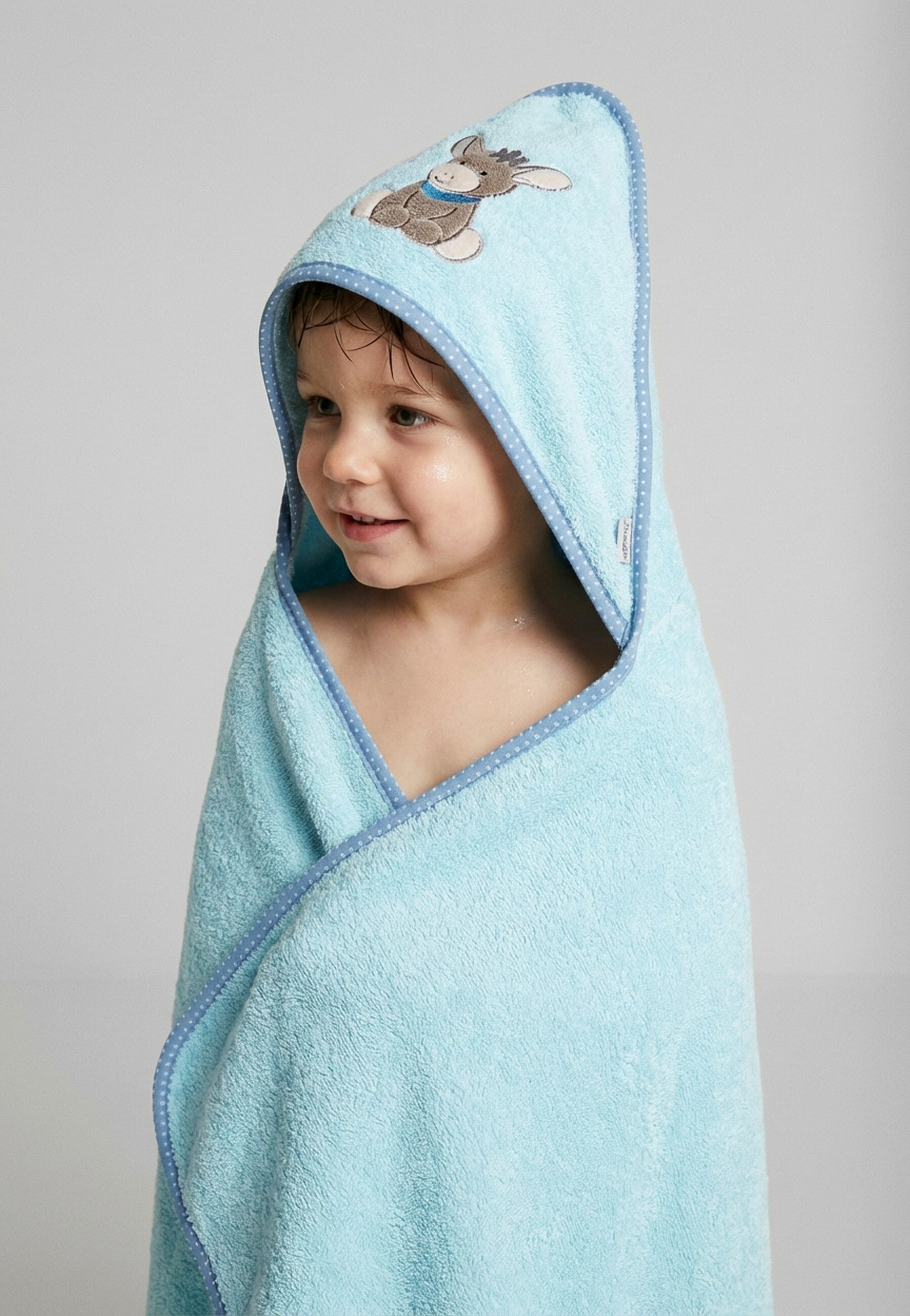 Weiches Baby Kapuzenhandtuch aus Baumwolle mit Esel Applikation