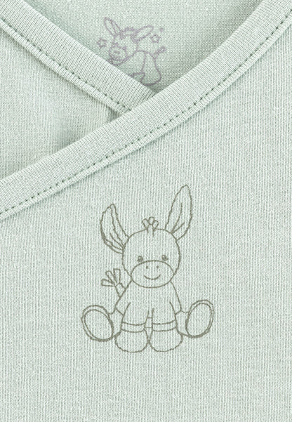 Ein liebevolles Detail ist der Emmi-Druck auf der Brust. Der Body eignet sich ideal für sensible Babyhaut und ist durch seine Wickelform perfekt für Neugeborene.