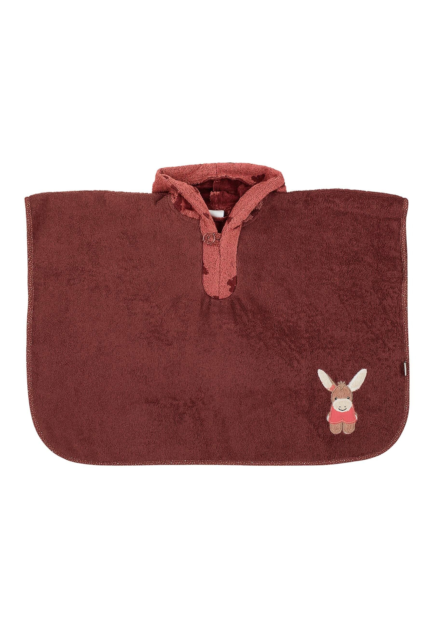 Flauschiger Poncho aus weichen Frottee mit Kapuze und Motiv Esel