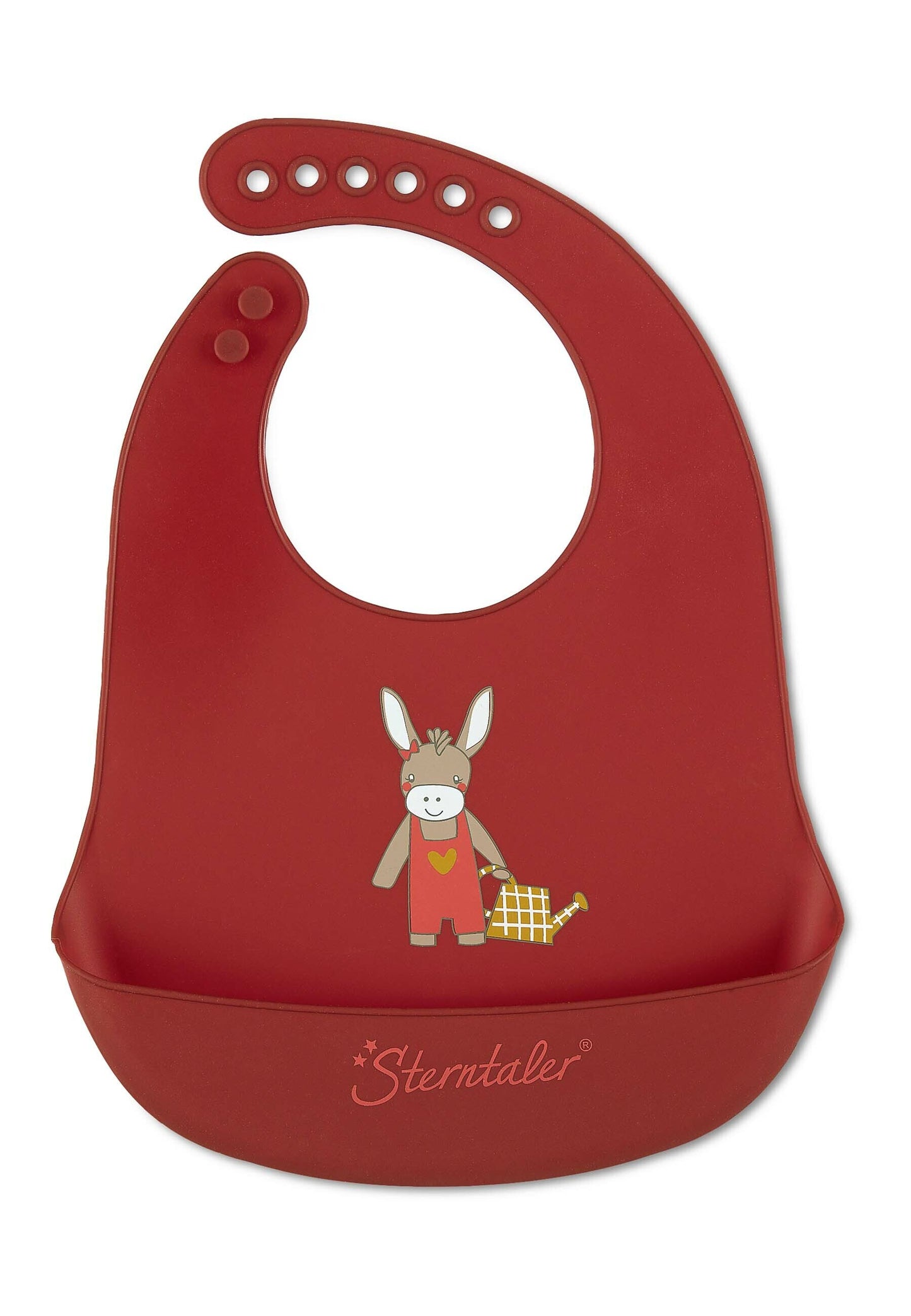 Mit diesem flexiblen Silikonlätzchen mit tollem Motiv Esel Emmily kann beim Füttern auch gerne mal etwas danebengehen. Das Lätzchen ist Spülmaschinenfest und verfügt über ein praktisches Auffangfach. Auf diese Weise ist die Kleidung und der Boden vor Essensresten geschützt. Aufgrund des verstellbaren Verschlusses kann das Lätzchen lange verwendet werden.