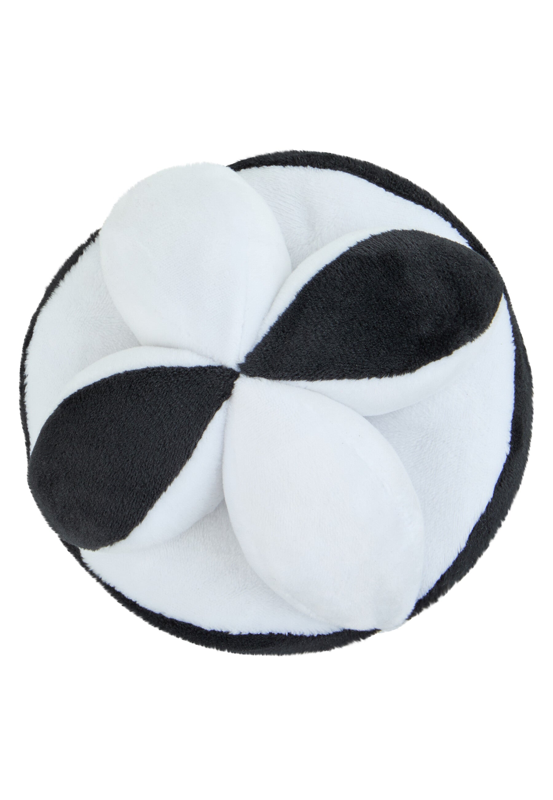 Der Stoffball Schwarz-Weiß bietet kontrastreiche Reize und lädt zum Greifen und Spielen ein.