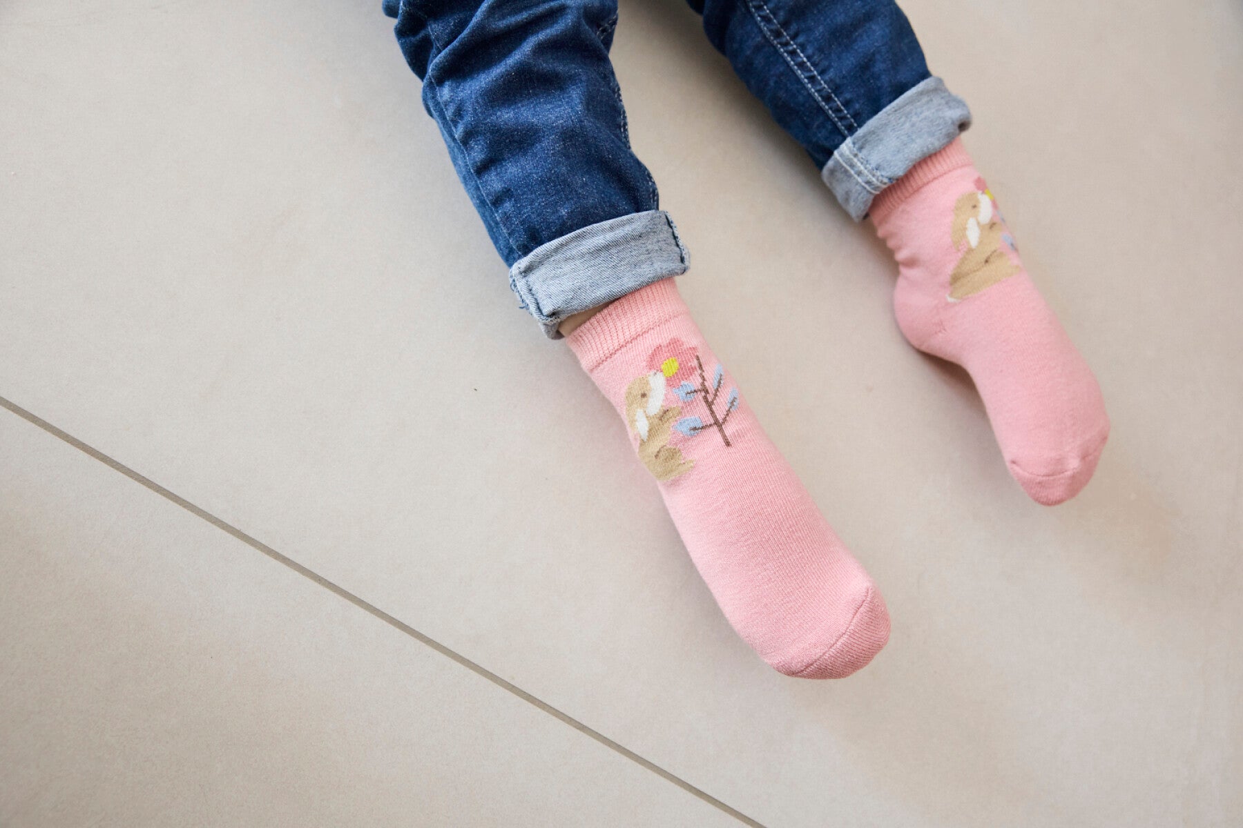Diese ABS-Socken mit süßen Hasenmotiven bieten doppelte Freude und sicheren Halt – ideal für fröhliche Entdeckungstouren im Alltag.