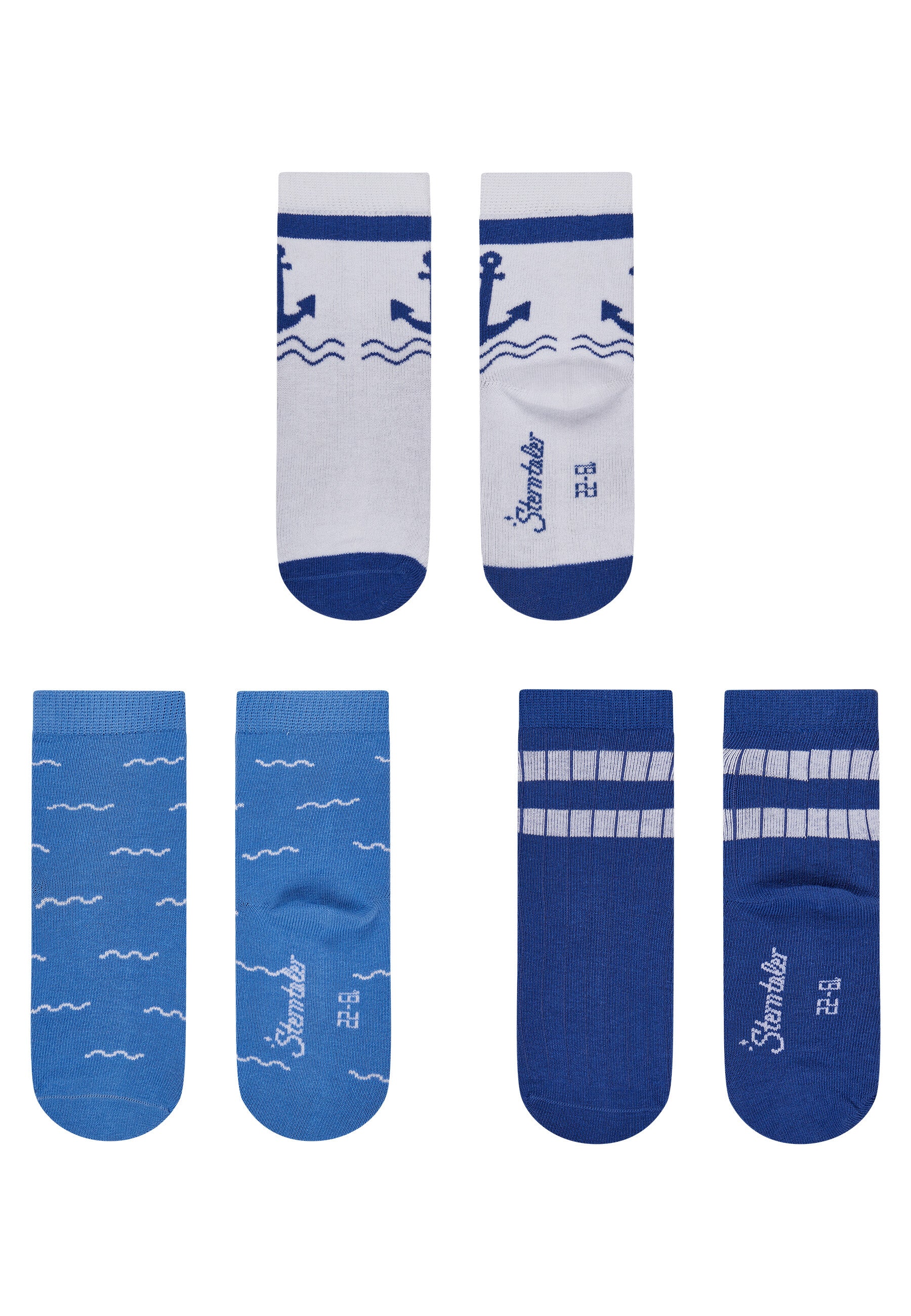 Maritime Socken für kleine Seefahrer im praktischen Dreierpack.