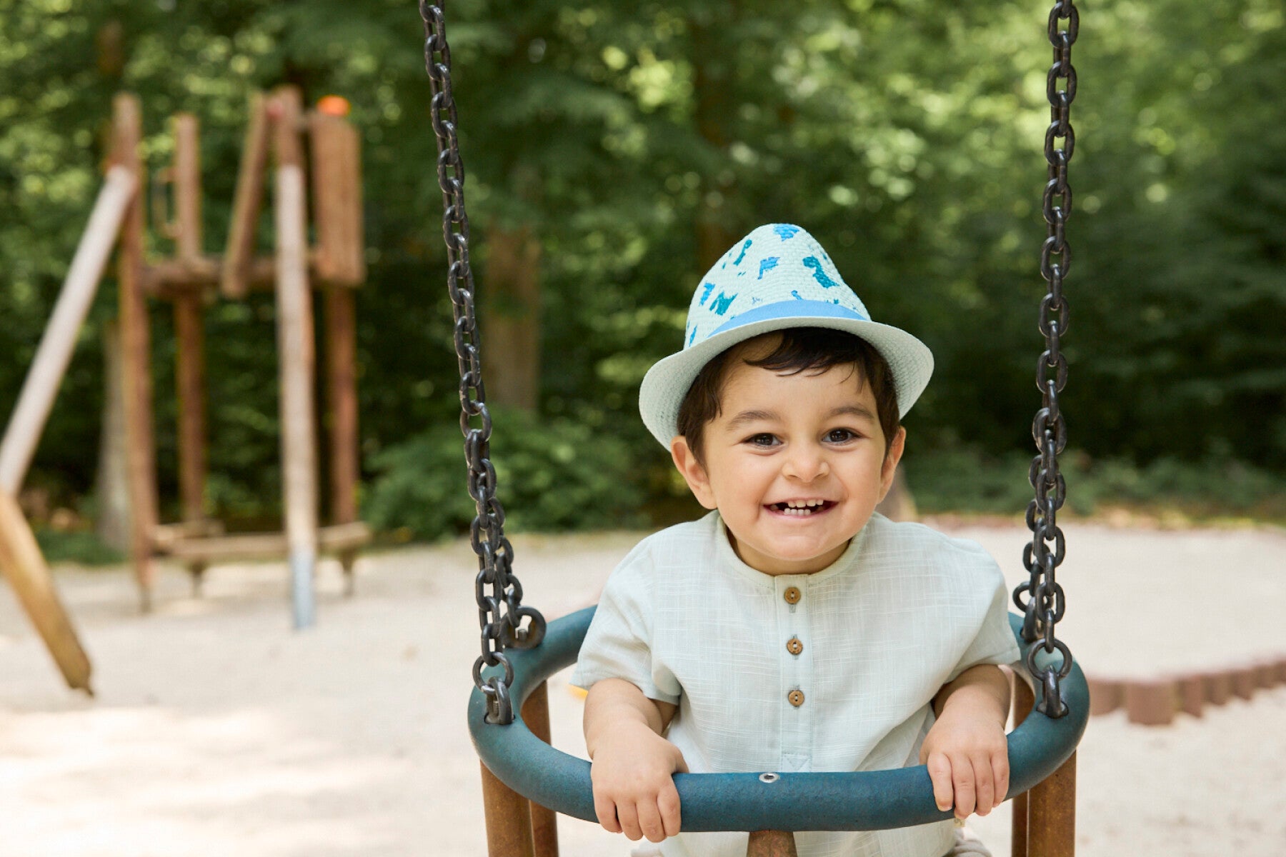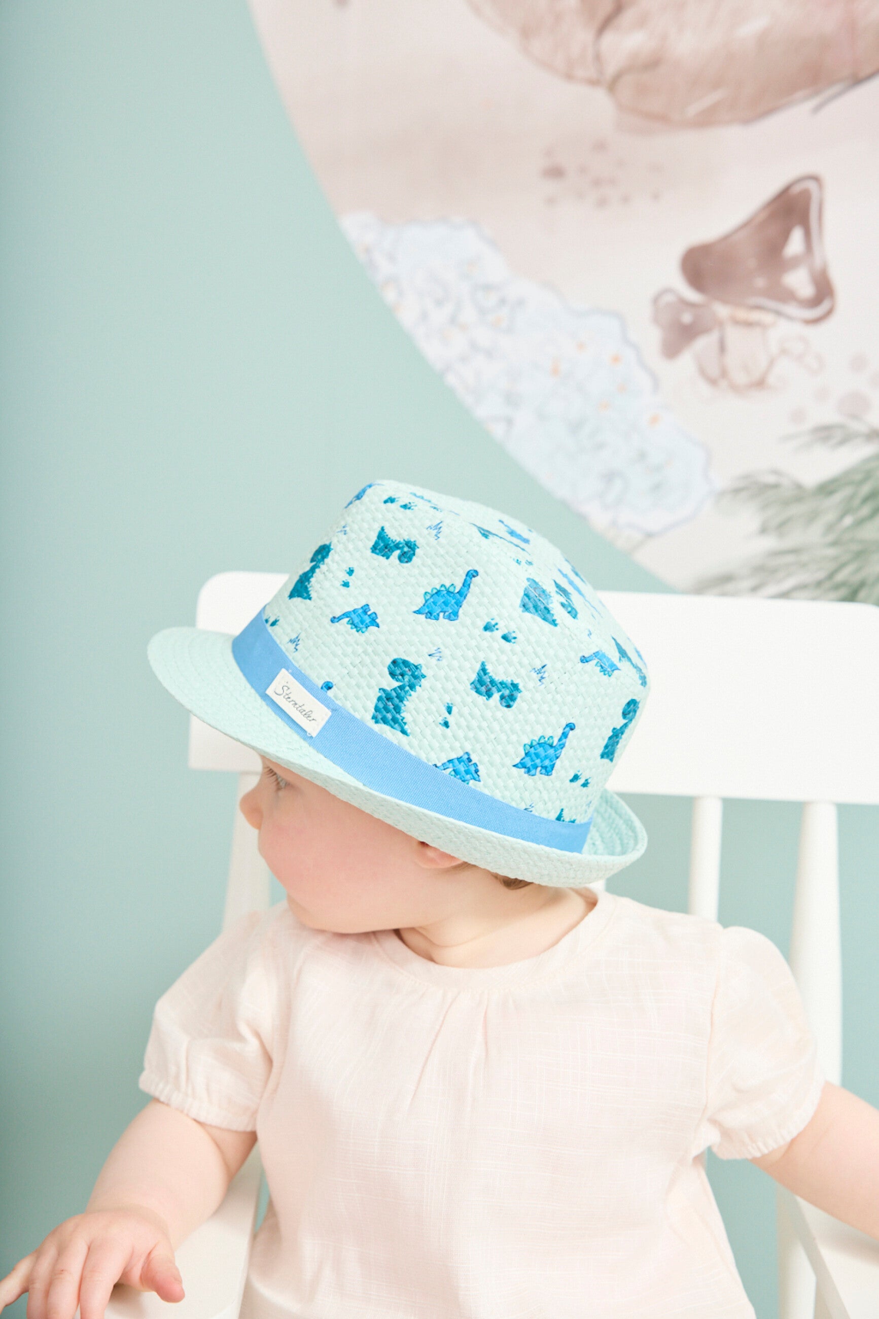 Ein luftiger Strohhut mit fröhlichen Dinos für sonnige Tage.