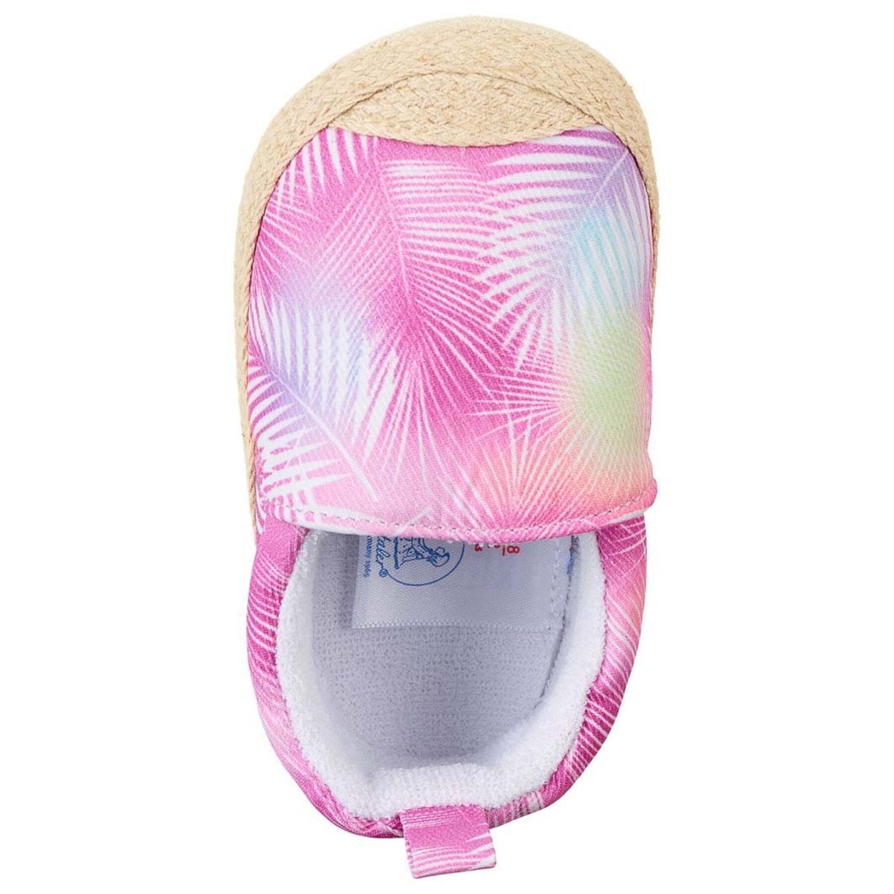 Die Baby Espadrilles sind aus weichem, bedruckten Material. Sie sind perfekt für den Sommer-Alltag geeignet und sind ein feines Accessoire für Mädchen. Die aufgenähte, rutschfeste Herzchen-Sohle gibt deinem Kind sicheren Halt und unterstützt bei den ersten Gehversuchen.