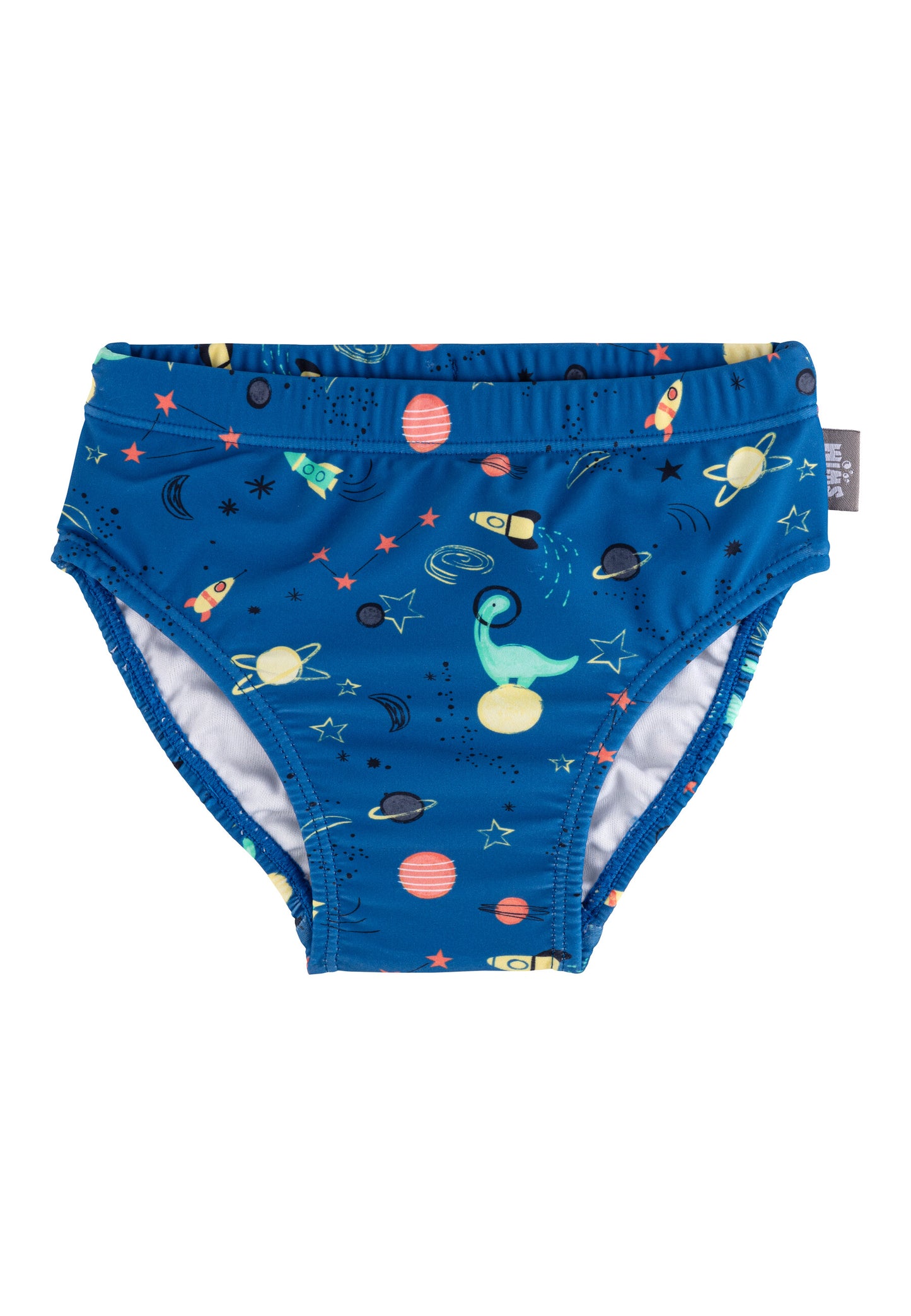 Diese Badehose mit coolem Weltraum-Print bietet UV-Schutz 50+ und ist mit einem Windeleinsatz bis Größe 86/92 ausgestattet. Ideal für kleine Abenteurer, die nicht nur auf der Erde planschen wollen.