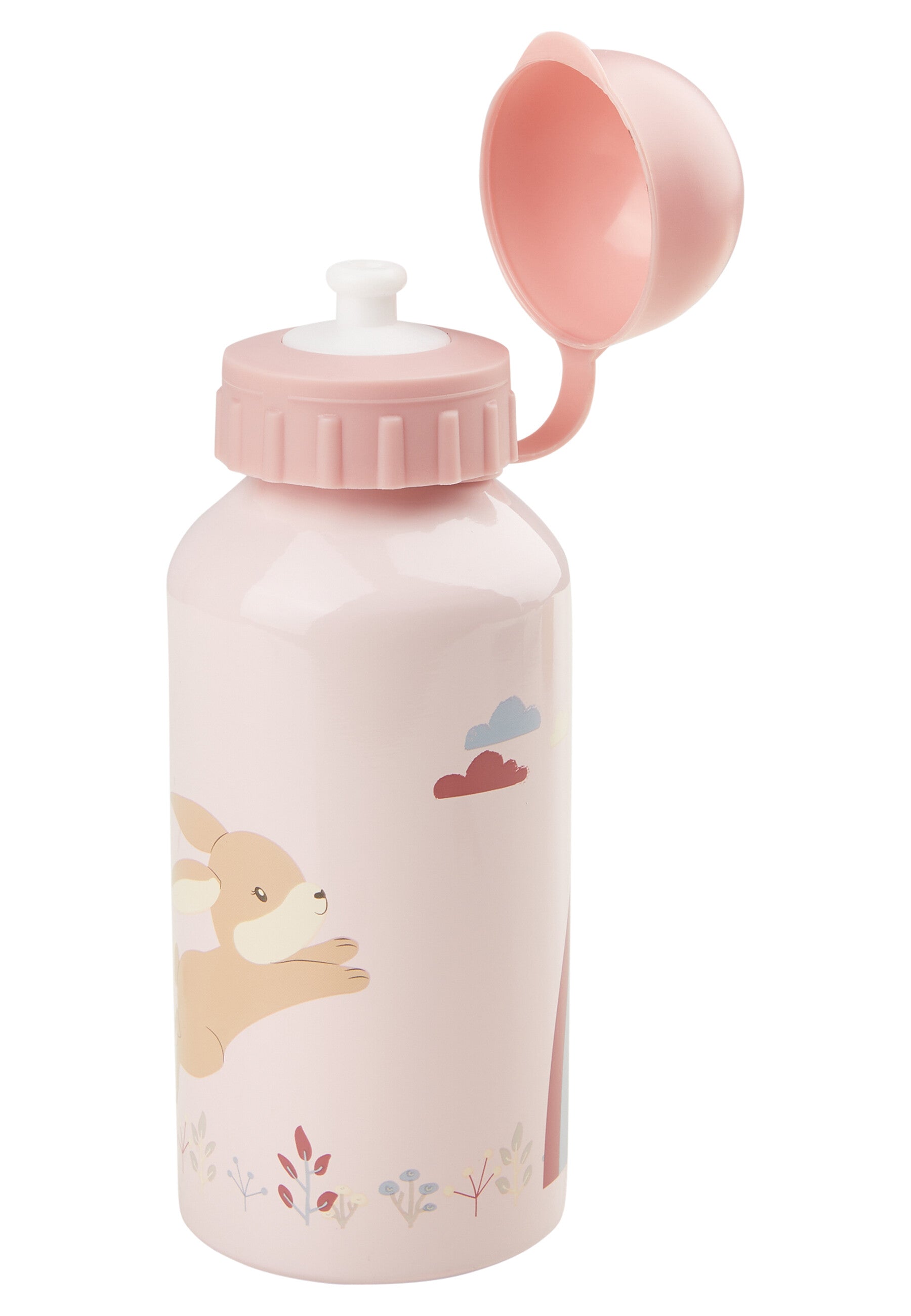 Trinkflasche Hase Hanni: Die leichte 400-ml-Aluminiumflasche ist ideal für Kindergarten, Schule und Ausflüge. Mit Drehverschluss und integriertem Trinkventil lässt sie sich leicht bedienen, während der Schutzdeckel das Mundstück hygienisch sauber hält. Das zarte Quarzrosa mit Hase-Hanni-Motiv macht sie zum liebevollen Begleiter. Material: Flasche 100 % Aluminium, Verschluss und Kappe 100 % Polypropylen.