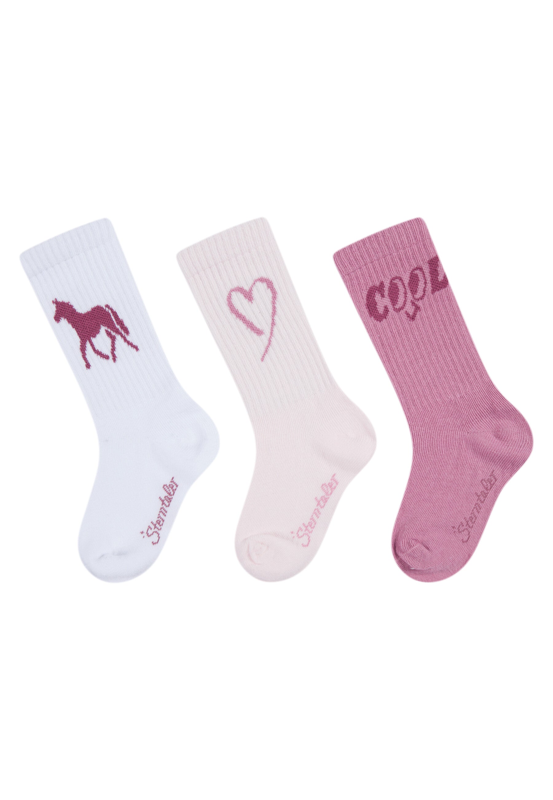 Socken 3er-Pack COOL – Lang mit Pferd und Herz